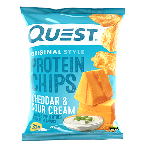 Die Quest Protein Chips sind nicht nur unglaublich lecker sondern auch voll und ganz fitnesstauglich! Anders als handelsübliche Chips aus dem Supermarkt bestehen die Quest Protein Chips zum Großteil aus hochwertigem Eiweiß. Pro Portion (32 Gramm) lieferst du deinen Muskeln 19 Gramm qualitatives Eiweiß. Die Quest Protein Chips enthalten jeweils nur 5 Gramm Kohlenhydrate und Fett. Für Chips sind das absolute Spitzenwerte. So kannst du ganz ohne schlechtes Gewissen knabbern und schlemmen. Du bekommst die Quest Protein Chips bei uns im Muskelmacher Shop in schmackhaften Geschmacksrichtungen.